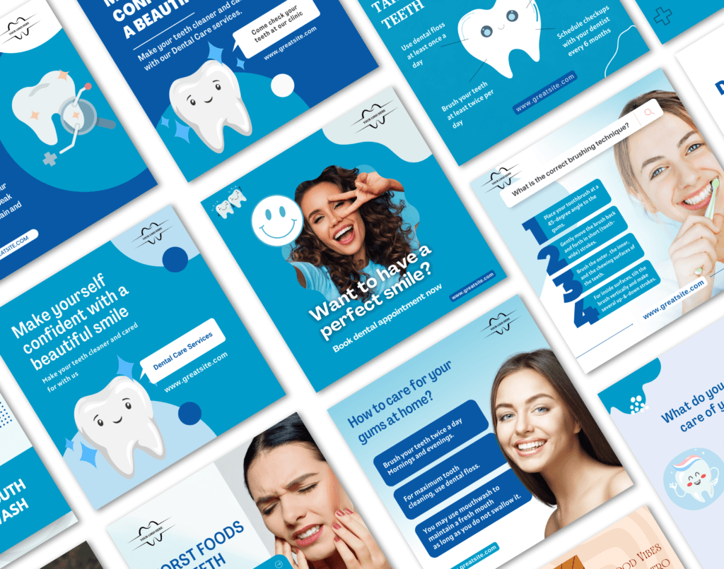 Boost your dental clinic’s online presence with customizable social media templates designed for dentists, dental surgeons, and teeth whitening studios. These Canva templates help you create professional, engaging posts for all major platforms—Facebook, Instagram, LinkedIn, Pinterest, and X—making it easy to promote your services and connect with patients across social media.