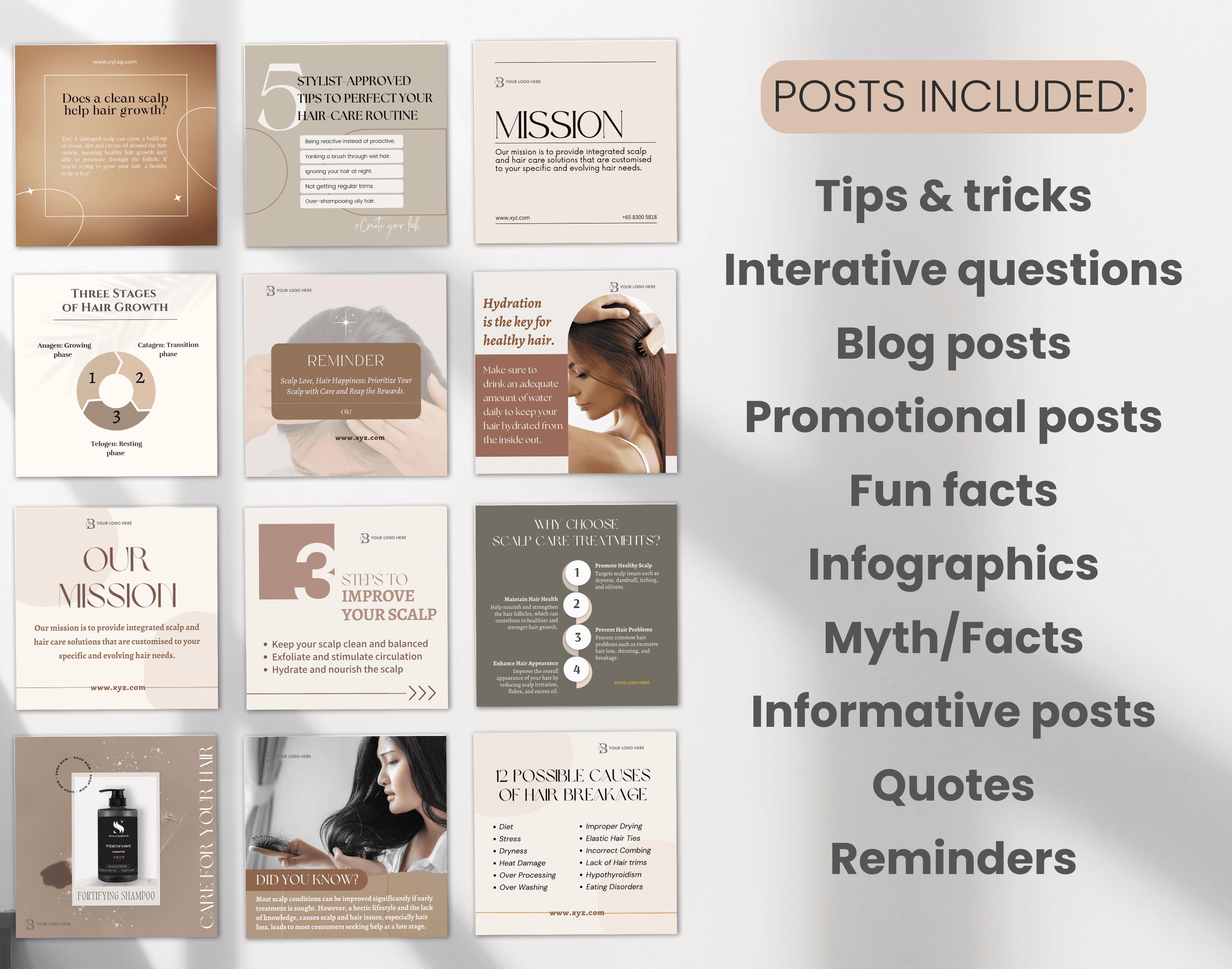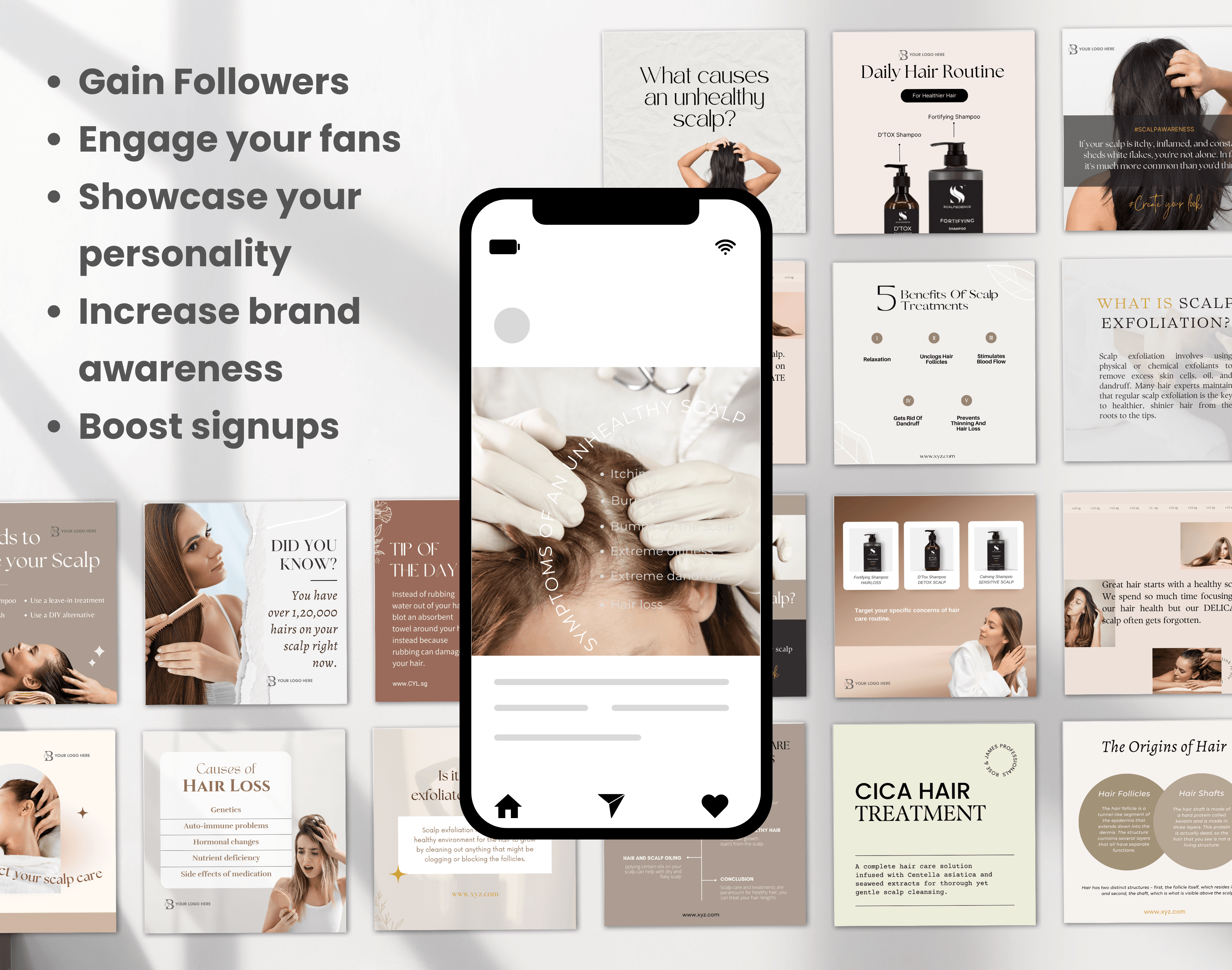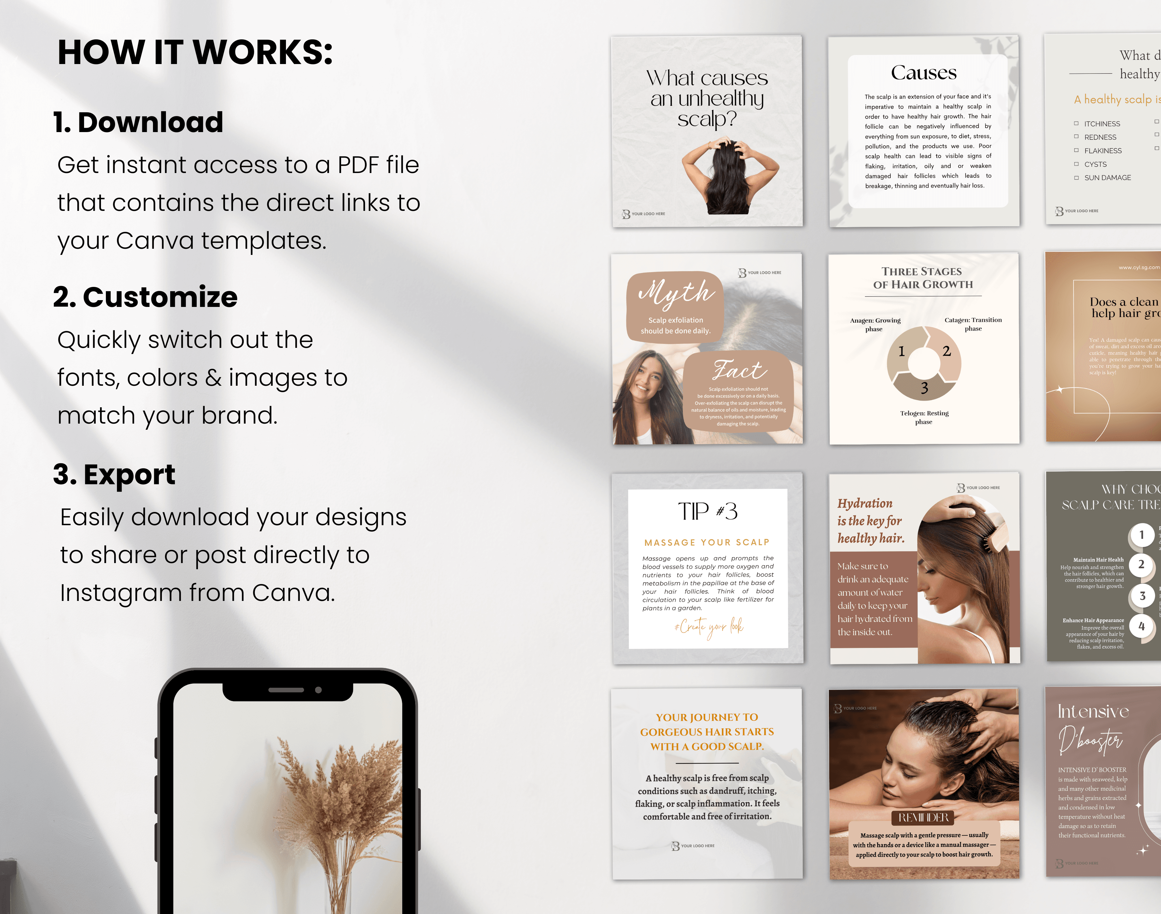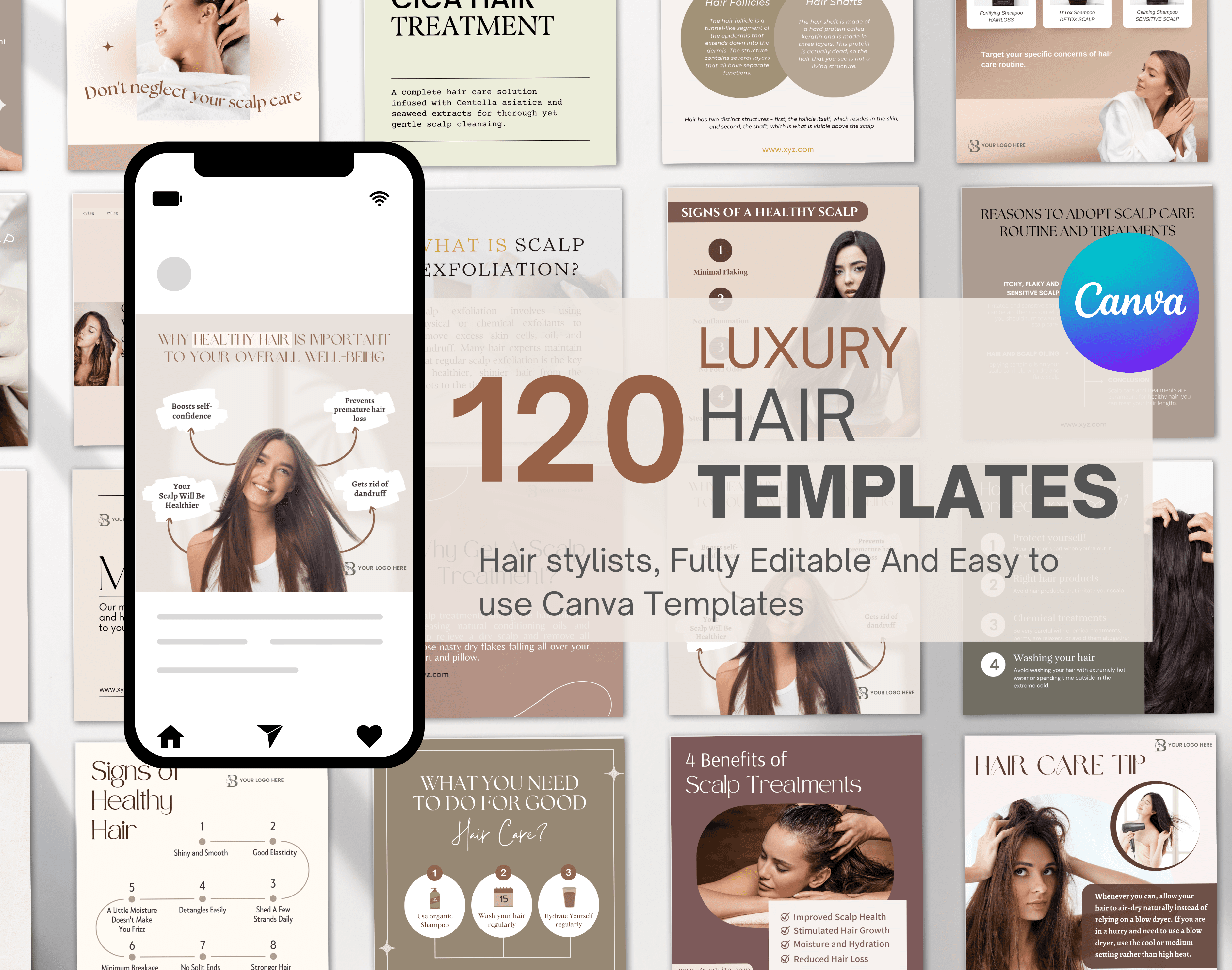 Hairstylist & Scalp Treatment Canva Templates | Hair Care, Haircuts & Salon Social Media Posts for Instagram