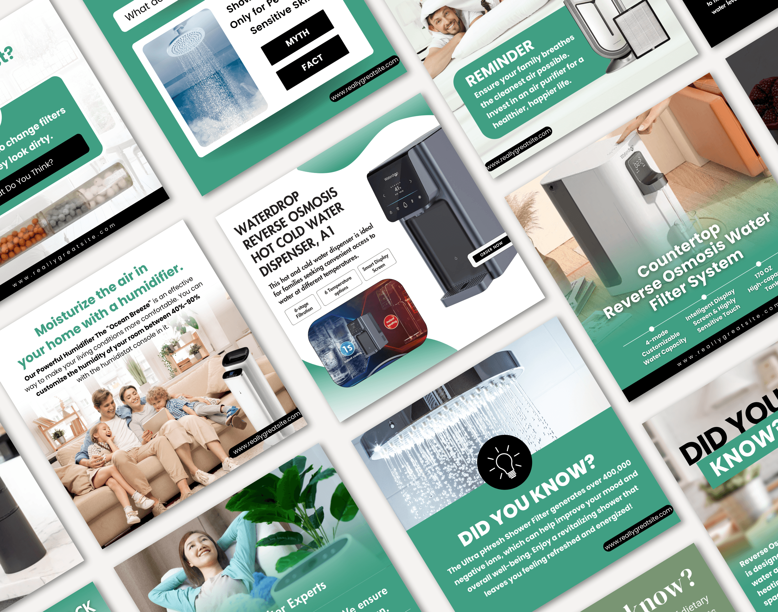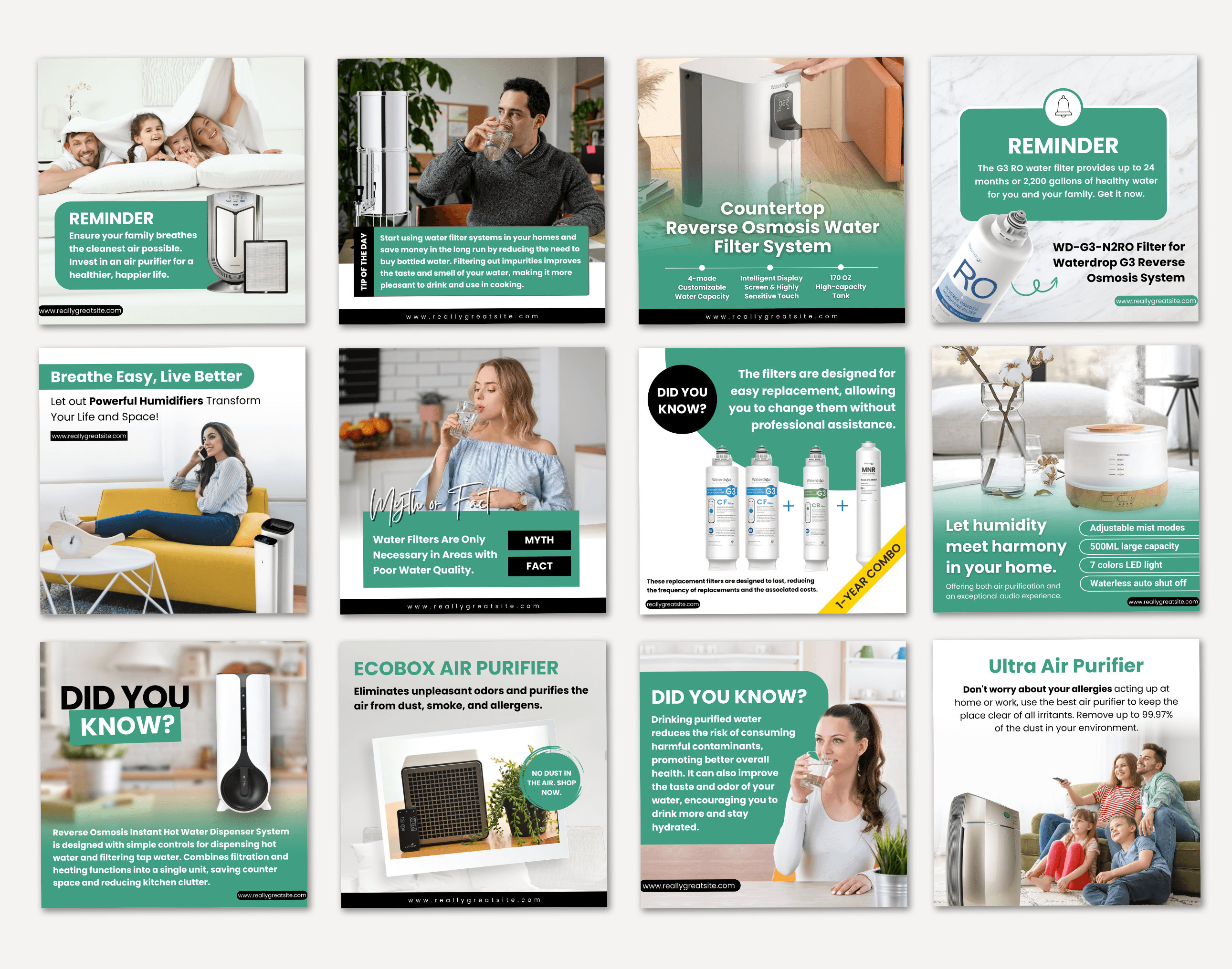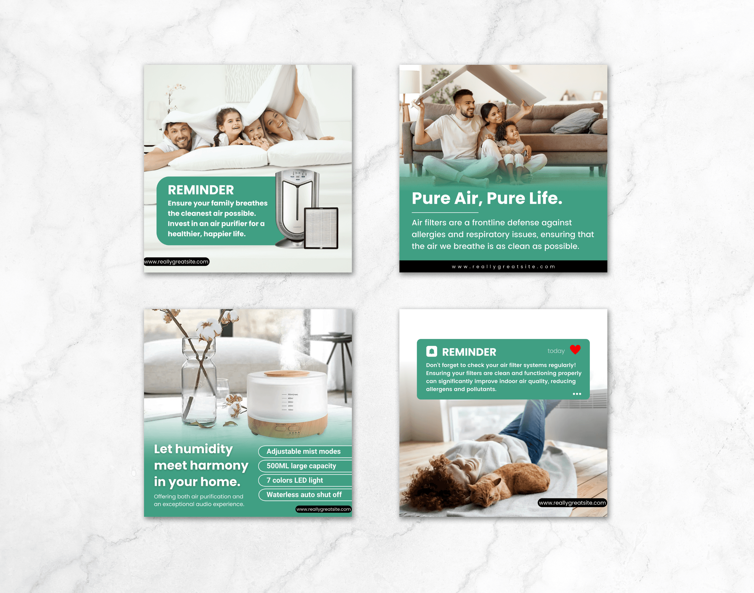 Home & House Filter Templates | Canva Social Media Posts for Water, Air Purifiers & Filtration Products on Instagram & Facebook