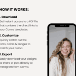 50 professionally designed post templates (1080x1080px, created in Canva). Fully customizable with your choice of colors, fonts, texts, and images.